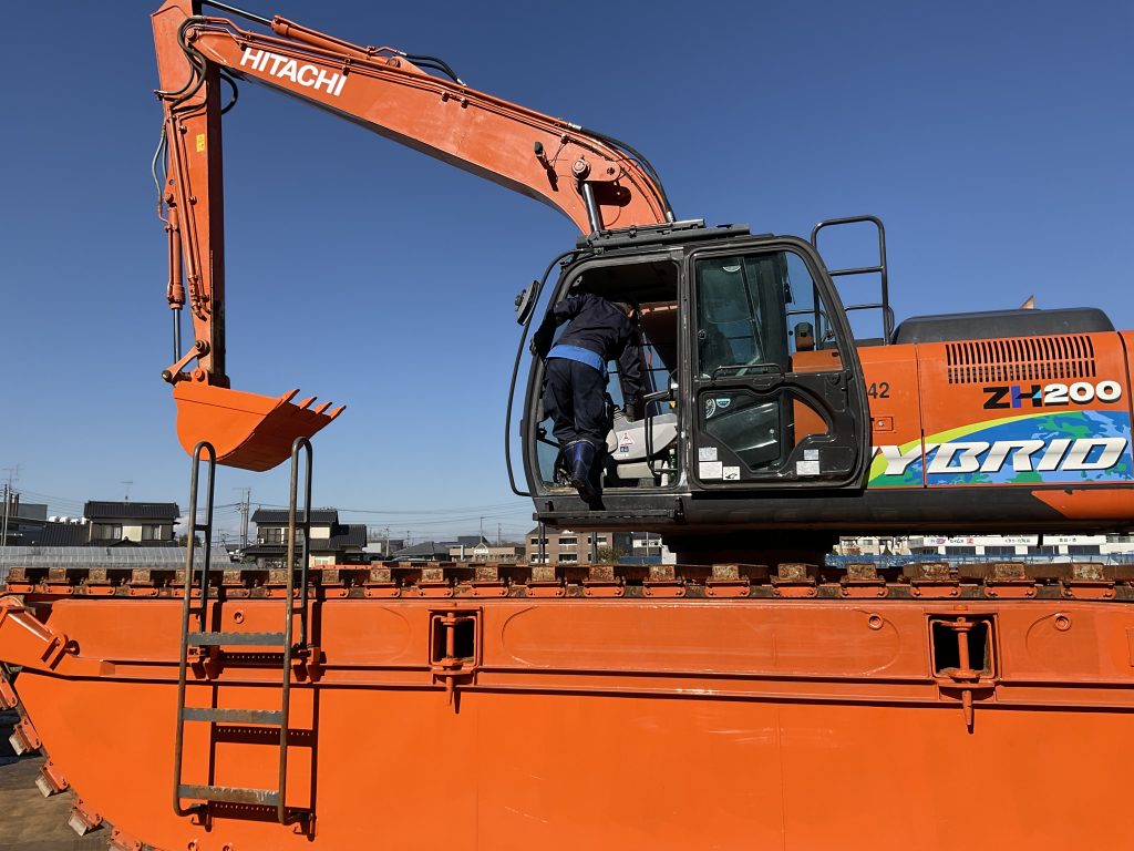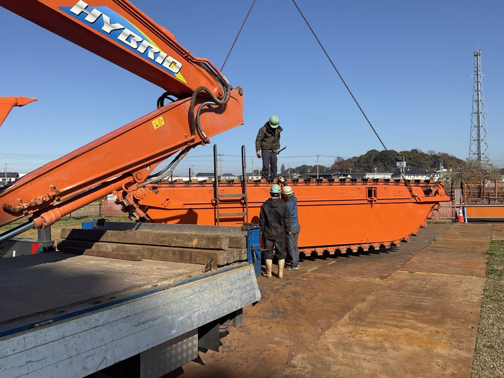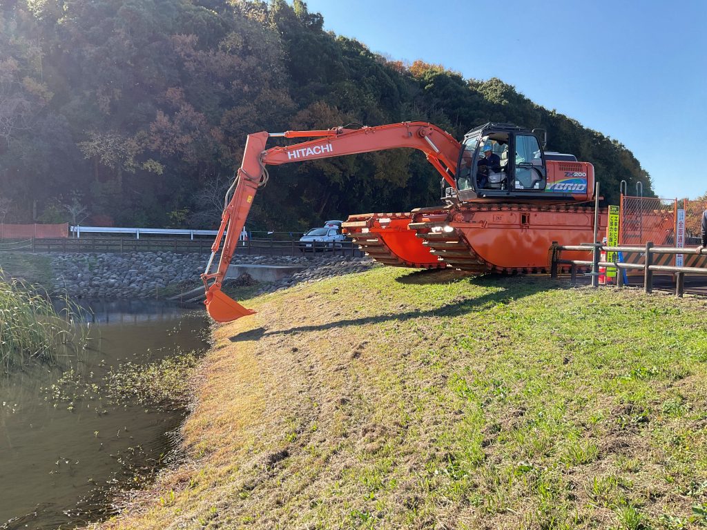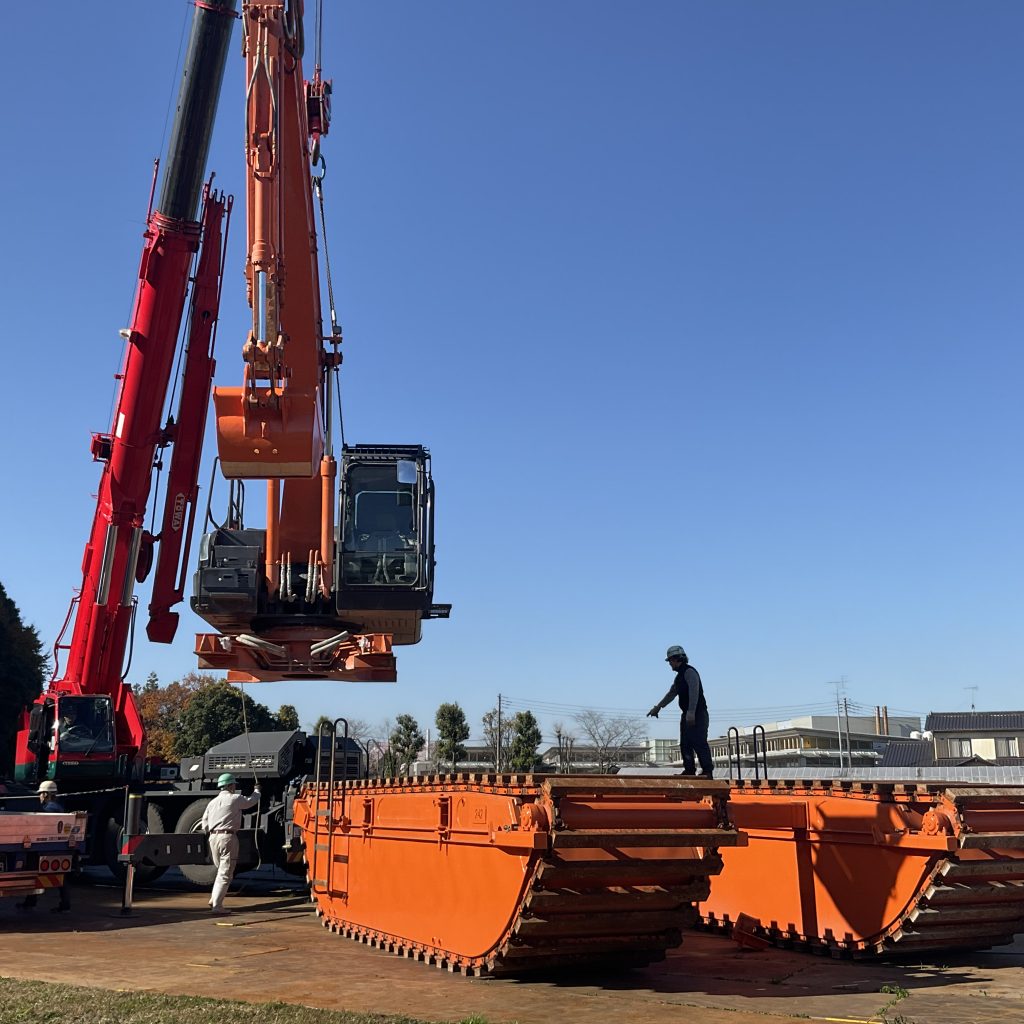 泥上掘削機と呼ばれる特殊なキャタピラーによる水上浮航が可能な